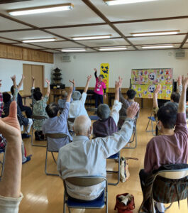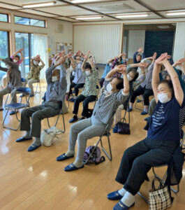 塗物町で笑いヨガ 公開日: 2023年9月26日更新日: 2023年9月26日著者: 綾田多美子カテゴリー: お知らせ 2023年9月25日喜多方市塗物町のいきいきサロンで笑いヨガ。以前からのお誘いがコロナ禍でできずに、今回約3年ぶりに実現しました。男女28名の方と、腸活やストレス時のエクササイズなどで、休憩を挟み約1時間余の笑いヨガができました。笑うだけでこんなに運動になるとは、途中から本気で笑った、などの感想が。また、高齢の方が一人で笑えなかったのが今日は笑えたと喜んでいただけたのが何よりでした。 関連記事 笑いクラブ休止 喜多方笑いクラブは2019年4月から始め、ようやく丸1年が経とうとするこの時期に、新型コロナ […] 公開日: 2020年4月4日更新日: 2020年4月4日著者: 綾田多美子カテゴリー: お知らせ 04 リーダー養成講座の変更 2020年6月笑いヨガリーダー養成講座が会津アピオで行われる予定でしたが、新型コロナウィルス […] 公開日: 2020年4月4日更新日: 2020年4月8日著者: 綾田多美子カテゴリー: お知らせ 6月河東のクラブ 2019年6月6日河東笑いヨガクラブいいべぇ~は8人での笑いヨガ、いつもの半分の人数でしたが […] 公開日: 2019年6月6日更新日: 2024年6月14日著者: 綾田多美子カテゴリー: お知らせ