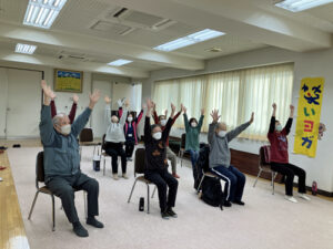ふれあいクラブで笑いヨガ 公開日: 2024年2月3日更新日: 2024年2月3日著者: 綾田多美子カテゴリー: お知らせ 2024年2月1日喜多方市の保健センターで認知症家族介護者交流会・ふれあいクラブで笑いヨガをしました。ご家族を毎日在宅で介護していらっしゃる方の息抜きになればと、笑いヨガを体験していただきました。座って笑うだけでも運動効果がある、体があったまったと、体全体が伸びて心地良かった、笑いが少ない毎日、できるだけ笑っていきたいなど、感想をいただきました。またご縁があれば誰でもできる笑いの健康体操・笑いヨガを一緒にしましょう。 関連記事 すこやかさんでの笑いヨガ 2019年4月10日午後からグループホームに伺って笑いヨガをしました。今回はじっくりみなさん […] 公開日: 2019年4月11日更新日: 2019年4月11日著者: 綾田多美子カテゴリー: お知らせ 4月2回目のウィズピア 2019年4月23日、ウィズピアでの2回目の笑いヨガでした。私が体調を崩した後だったので少し […] 公開日: 2019年4月26日更新日: 2019年4月26日著者: 綾田多美子カテゴリー: お知らせ 6月のわかばカフェ 2019年6月12日わかばカフェでの笑いヨガです。いつもオープン前から次々とお客様が来られて […] 公開日: 2019年6月13日更新日: 2019年6月13日著者: 綾田多美子カテゴリー: お知らせ