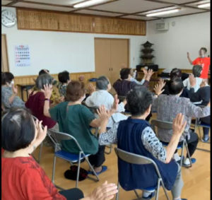 2024年9月30日喜多方市塗物町のサロンで笑いヨガ。昨年に続いて2回目、天気に恵まれ、換気しながらできました。初めての方も含めて30人の方と、「いいぞ、いいぞ」が「さすけね、さすけね」で、元気に1時間、リフレッシュ効果を感じていただきました。一人暮らしの男性の方が、しばらく笑っていなかったが今日は笑えた、他、笑うことが大事と再確認できた、気持ちよかった等々の感想がありました。最後に難聴対策、耳のマッサージをしながら笑った後に、水道の漏れに気づいた、効果があったよ、目の笑いヨガもあれば、と声掛けいただきました。次回にはぜひ、取り入れたいと思います。継続は力、これからも笑いの健康体操笑いヨガを続けていきたいと思います。