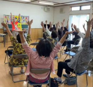 2024年9月30日喜多方市塗物町のサロンで笑いヨガ。昨年に続いて2回目、天気に恵まれ、換気しながらできました。初めての方も含めて30人の方と、「いいぞ、いいぞ」が「さすけね、さすけね」で、元気に1時間、リフレッシュ効果を感じていただきました。一人暮らしの男性の方が、しばらく笑っていなかったが今日は笑えた、他、笑うことが大事と再確認できた、気持ちよかった等々の感想がありました。最後に難聴対策、耳のマッサージをしながら笑った後に、水道の漏れに気づいた、効果があったよ、目の笑いヨガもあれば、と声掛けいただきました。次回にはぜひ、取り入れたいと思います。継続は力、これからも笑いの健康体操笑いヨガを続けていきたいと思います。