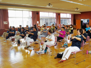 2025年8月22日、西会津公民館「あいばせ体奏」に呼んでいただき、60代から80代の23名のみなさんと楽しく笑いヨガができました。昨年福島医大の大平哲也先生の講演を聞かれて、笑いヨガを希望されたとのことでした。大平先生の楽しく魅力ある講演会の後と聞いてプレッシャーかかりましたが、みなさんの笑顔に励まされてあっという間の時間でした。「あいばせ体奏」は最初に西会津町独自の「さすけねえ輪音頭」とラジオ体操から始まります。町のフレイル予防の熱意が伝わりました。参加者のみなさんの年齢を感じさせない若さと元気が伝わり、逆に元気をいただきました。猛暑や老化現象、物価高などをエクササイズにして、すべてが笑いにできること、一人ではできないけどみんなとならできる、気持ちが軽くなった、ほんとの笑いになったと笑いヨガの良さを体験できたようでした。普段ご家族の介護をされる方もいらっしゃったようです。気分転換できたらいいなと思います。猛暑日の一日、気持ちのいい汗をかきました。
