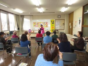 会津若松市河東町南高野は私のふるさと、2025年12月21日、幼馴染からお声かけいただき「いきいき百歳体操クラブ」で笑いヨガをすることができました。懐かしい遠縁の方や中学の一つ上の先輩と約60年ぶりになる思いもがけない再会に恵まれ、幼馴染に感謝です。いつも緊張してしまいますが、みなさんのおかげで固くならずに、あっという間の笑いヨガの時間でした。どこの地区でも参加が少ない男性の方が3名いらっしゃいました。運動効果を感じていただいたようで、家族にも勧めたい、気持ちが前向きになったと感想が聞かれました。最後にクリスマスにちなみ、「きよしこのよる」を歌い、ケーキまでごちそうになりました。来年も笑いヨガを一緒に出来たらうれしく思います。