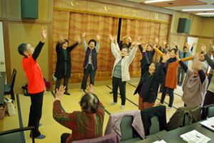 医療生協喜多方ひがし支部の交流会 公開日: 2019年3月8日更新日: 2019年3月8日著者: 綾田多美子カテゴリー: お知らせ 2019年3月8日、医療生協喜多方ひがし支部の交流会で笑いヨガをしました。24名の方が来られ内男性が2名でした。最初立って行う自信がなく椅子に座っていた方も途中から立ち上がって皆さんと楽しみました。交流会の最後は会津磐梯山の歌と踊りで盛り上がりました。 関連記事 グループホーム訪問 2019年2月20日 グループホームすこやかさんにお邪魔しました。季節の室礼、ひな人形と会津 […] 公開日: 2019年2月21日更新日: 2019年2月21日著者: 綾田多美子カテゴリー: お知らせ 10月の河東笑いヨガ 2019年10月3日河東笑いヨガに16人が来られました。9月にティーチャーになられた小林さん […] 公開日: 2019年10月4日更新日: 2019年10月5日著者: 綾田多美子カテゴリー: お知らせ 会津北西部等全域の集いで笑いヨガ 2019年10月9日会津坂下町の福島県会津自然の家で会津北西部等全域の方々の集いがあり笑いヨ […] 公開日: 2019年10月9日更新日: 2019年10月9日著者: 綾田多美子カテゴリー: お知らせ