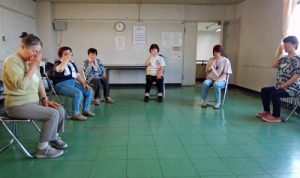 喜多方での笑いヨガクラブ 公開日: 2019年6月6日更新日: 2019年6月6日著者: 綾田多美子カテゴリー: お知らせ 2019年6月4日喜多方笑いヨガクラブ、開始から3回目になりました。高田先生の講演会に来られた方二人、JA婦人部の笑いヨガに来られた方二人が新しく参加されましたが、前回まで来られた方が旅行で休み、前回男性一人で参加された方が男が一人では厭だ、止めたいと連絡がありました。残念です。喜多方はゆったり体操や太極拳が長く続いて広まっていますから、笑いヨガが浸透するまでには時間がかかると思います。気長にやっていきましょう。 関連記事 喜多方で笑いヨガクラブ スタート 2019年4月2日、喜多方で第1回笑いヨガクラブを始めました。朝起きたら雪にがっかりし、何人 […] 公開日: 2019年4月2日更新日: 2019年4月2日著者: 綾田多美子カテゴリー: お知らせ 只見町亀茶会で4年ぶりの笑いヨガ 2023年10月31日、只見町亀茶会で4年ぶりに笑いヨガができました。女性のSさんのお骨折り […] 公開日: 2023年11月2日更新日: 2023年11月2日著者: 綾田多美子カテゴリー: お知らせ 喜多方市姥堂公民館で笑いヨガ 2024年7月5日喜多方市姥堂公民館の脳トレ講座で笑いヨガ。田園地帯の中にある公民館は青稲が […] 公開日: 2024年7月6日更新日: 2024年7月6日著者: 綾田多美子カテゴリー: お知らせ