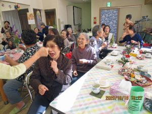 10月のわかばカフェ 公開日: 2019年10月17日更新日: 2019年10月17日著者: 綾田多美子カテゴリー: お知らせ 2019年10月16日わかばカフェでの笑いヨガ、毎週このカフェを楽しみにして来られる方がいつも開店前から早々と来店されます。今月の笑いヨガはお口の笑トレを中心にしました。愛媛の枝廣先生がフェースブックで10月16日は「世界食糧デー」とのことで、おすそ分け笑いを紹介されましたので、私も初めておすそ分け笑いをしてみました。これから新メニューに入れようと思います。おすそ分けの習慣が多い地域ですから、いいぞ いいぞ イェーイ!です。 関連記事 豊川公民館「ゆめ塾」で笑いヨガ 2025年3月5日喜多方市豊川公民館の「ゆめ塾」での閉校式に笑いヨガのお誘いをいただきました […] 公開日: 2025年3月8日更新日: 2025年3月8日著者: 綾田多美子カテゴリー: お知らせ 2020年最初の笑いヨガ 2020年1月14日ウィズピアでの笑いヨガが今年最初の笑いヨガになりました。先週は喜多方笑い […] 公開日: 2020年1月15日更新日: 2020年1月15日著者: 綾田多美子カテゴリー: お知らせ 06 喜多方での笑いヨガクラブ 2019年6月4日喜多方笑いヨガクラブ、開始から3回目になりました。高田先生の講演会に来られ […] 公開日: 2019年6月6日更新日: 2019年6月6日著者: 綾田多美子カテゴリー: お知らせ