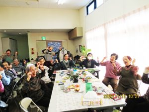 2019年11月13日、わかばカフェにお邪魔しました。オープニングはいつもスタッフさんのハモニカ、コカリナ、キーボード演奏です。今回は初めての方が塩川町から来られました。ナマステ挨拶笑いの後にインフルエンザ対策の「手洗い笑い、うがい笑い」をしました。また枝廣先生のフェースブックに載っていた11月13日はいい膝の日ということで、「いい膝の日笑い」も初めてしました。今回の笑いヨガが2回目になるYさんが一人笑いはできないけど、ここでみんなで笑うから笑えると。いつもハモニカ演奏をしてくださいます。裕次郎の夜霧よ今夜もありがとうを聞かせていただきました。