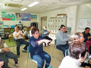 12月のウィズピア 公開日: 2019年12月12日更新日: 2019年12月12日著者: 綾田多美子カテゴリー: お知らせ 2019年12月10日ウィズピアでの笑いヨガ、いつものメンバーさんと1時間笑って過ごしました。後半には座ってもできる筋トレで、サイクリング、ウオーキング、相撲笑いなどしました。Tさんは体が温まって手のこわばりが良くなったと。NさんやOさんからサイクリングがきつかったと感想で言われました。サイクリングの加減を皆さんの表情から読み取れるように・・以後、注意をしなければと思いました。次回は今年最後、クリスマスイブの日になります。よろしくお願いします。 関連記事 退職女性教師「あけぼの会」で笑いヨガ 2025年10月9日、喜多方厚生会館にて退職女性教師の方々の「あけぼの会」より笑いヨガのお声 […] 公開日: 2025年10月17日更新日: 2025年10月17日著者: 綾田多美子カテゴリー: お知らせ 喜多方市内のケアマネさん方と笑いヨガ 2025年3月19日、喜多方市内のケアマネさん方の会合に笑いヨガのお声掛けをいただきました。 […] 公開日: 2025年3月20日更新日: 2025年3月20日著者: 綾田多美子カテゴリー: お知らせ 松長団地で笑いヨガ 2024年7月31日会津若松市県営松長団地自治会館で介護予防講座の笑いヨガをしました。前回2 […] 公開日: 2024年8月1日更新日: 2024年8月1日著者: 綾田多美子カテゴリー: お知らせ