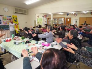 2020年1月22日は今年最初のわかばカフェでした。いつもよりお客様が多く35人の方が来られ店内一杯にぎやかになりました。91歳のご夫婦はカフェに初めての参加でした。偶然にも最高齢95歳のTさんと久しぶりの再会ができ話がはずんでいました。いつもスタッフさんの漬物をいただいていましたが、今回はハモニカを吹かれる男性Yさん手作りのキュウリの粕漬の差し入れがありました。ごちそうさまです。私はまだ体調に自信のない時でしたが、皆様から元気をいただきすっかり回復した感じになりました。今年も笑いヨガでみなさんから元気をいただいていこうと思います。