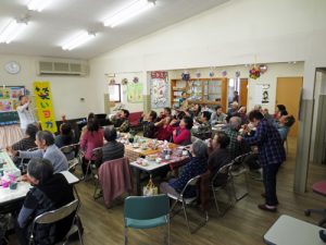 2020年1月22日は今年最初のわかばカフェでした。いつもよりお客様が多く35人の方が来られ店内一杯にぎやかになりました。91歳のご夫婦はカフェに初めての参加でした。偶然にも最高齢95歳のTさんと久しぶりの再会ができ話がはずんでいました。いつもスタッフさんの漬物をいただいていましたが、今回はハモニカを吹かれる男性Yさん手作りのキュウリの粕漬の差し入れがありました。ごちそうさまです。私はまだ体調に自信のない時でしたが、皆様から元気をいただきすっかり回復した感じになりました。今年も笑いヨガでみなさんから元気をいただいていこうと思います。